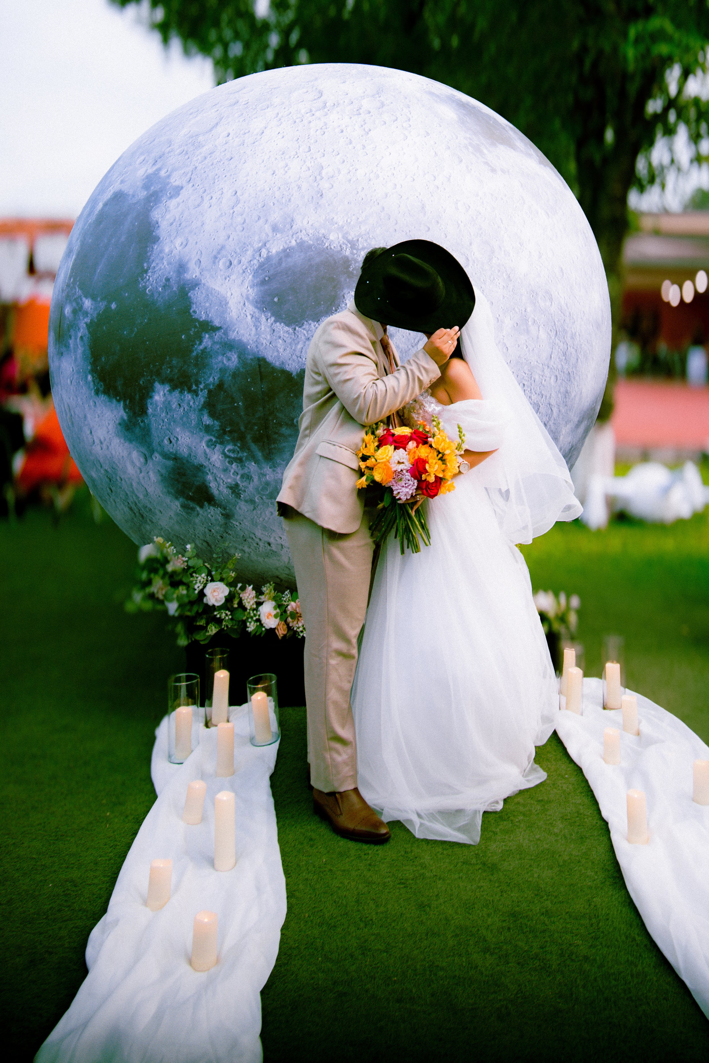 Haz que tu boda brille con un escenario único y encantador. Nuestra luna iluminada crea una atmósfera romántica e inolvidable, ideal para la ceremonia, la recepción o un fondo espectacular para tus fotos.